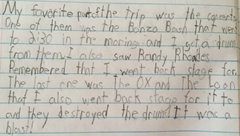 Scoob needed to complete his 2nd grade teacher’s homework assignment to write a paragraph about his favorite part of our trip.