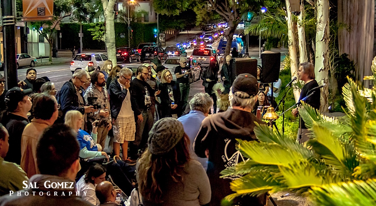 Also speaking last night was Suzanne Verge, President of the Los Angeles Chapter of the Brady Campaign to Prevent Gun Violence. These gatherings also allow fans in attendance to address the crowd with songs, poetry, tales of their personal experiences but music is the commonality everyone could relate to and come together.