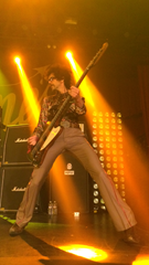 The band as well as their music is full of grandeur and bombast- their rock n’ roll anthems just sweep you off your feet. Best described as simple and enjoyable with guitar hooks that make you want to pick up an air guitar and wail away. Their music has a classic rock feel for people who want have a good time, the way rock music used to be- think Van Halen meets Queen. It’s big, bombastic, party rock n roll with sing along choruses and songs that just rock. The audience sang along with every word to every song that was played and the crowd just ate it up.
