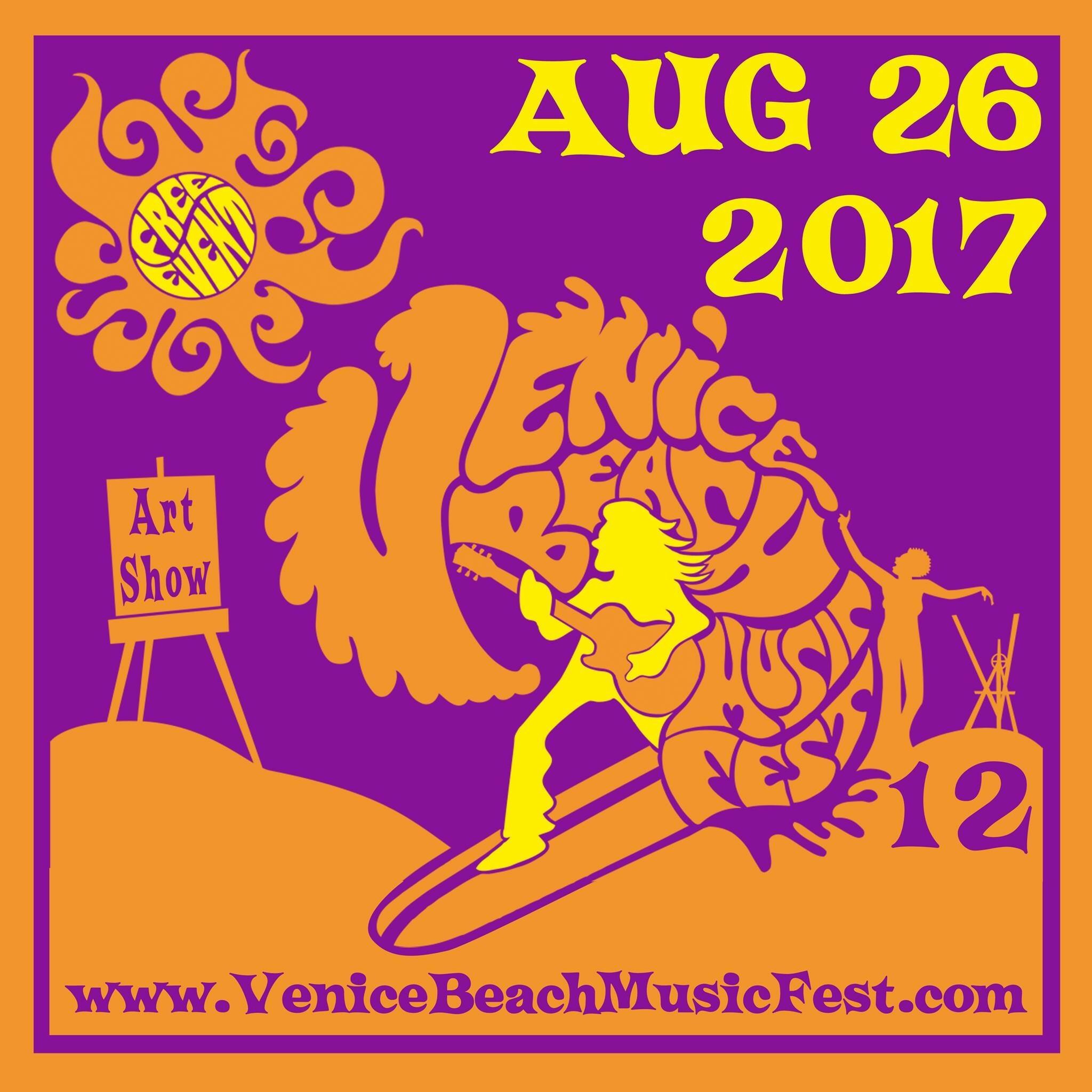 The annual Venice Beach Music Fest music and arts festival celebrates a decade of totally free music, art, literature, and dance at the beach on Saturday, August 26, 2017, from 11:00 A.M. to Sunset in Windward Plaza Park (1 Windward Avenue, between the boardwalk and the bike trail).