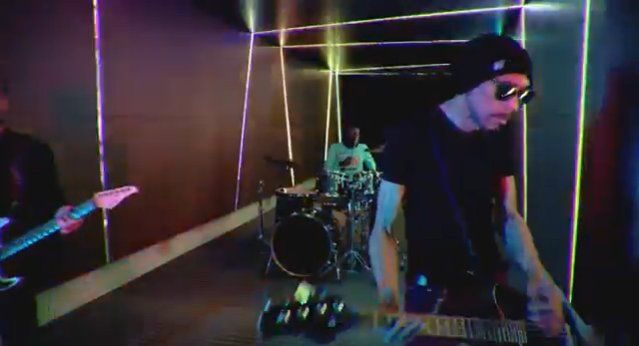 This song is really special to me because it speaks for everyone. I like messages in music that are right in the middle for everybody where there is no chosen side and there’s only the truth. Recording this video was super fun as well. We all got our own personality and our color, so that explains the three different colors. And as you can see in this music video, when they’re all combined, it makes such a really cool effect and beautiful representation of how everybody works together. On one of the shots, we had dUg stand on top of this gigantic road case with wheels that couldn’t stop, so we had to put sandbags on it and hold it while he was in front of the squiggly wall. He was rocking out on this case and it was scary to watch and pray he didn’t fall. Lots of special and cool moments when recording this music video that I will never forget with Director Allison Roberto and Director of cinematography Sébastien Paquet, along with Brandon Robbins, who is the light designer, and rest of the hands helping with filming and taking care of everything else we needed to accomplish this: Thomas Hawthorn, Steve Getman, Kai Patterson, and also the brilliant video editor behind the curtain, William Felch (AKA Wombat).