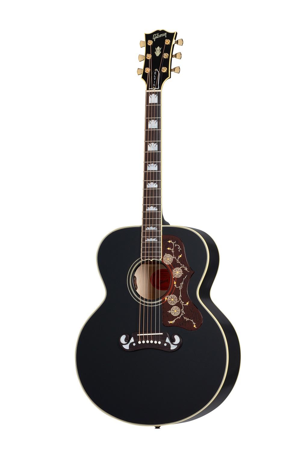 Elvis often used Gibson SJ-200 acoustic guitars, aka “The King of Flat Tops.” Gibsonhas now created Elvis’ favorite SJ-200 in Ebonythat is based on a guitar that was given to Elvis as a gift at a recording session at RCA Studio B in Nashville, TN in the mid-1960’s. Elvis often used this Gibson SJ-200 acoustic guitar for numerous high-profile live performances and in 1976, Elvis gave it to his close friend and aide at Graceland Marty Lacker.