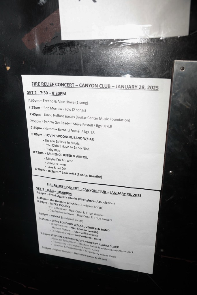 TUESDAY, JANUARY 28TH AT THE CANYON IN AGOURA HILLS. Hosted by radio personality Rita Wilde appearances included Micky Dolenz, Laurence Juber (Wings) & AIRFOIL, members of The Lovin’ Spoonful, Steve Porcaro (Toto), Don Randi (The Wrecking Crew), Venice, Carl Verheyen Band, Rob Morrow, Bernard Fowler (The Rolling Stones), The Strawberry Alarm Clock, The Delgado Brothers, Rosemary Butler, Steve Postell (The Immediate Family), Freebo & Alice Howe, Phil LoPresti (Billy Gibbons), Alisan Porter (winner of The Voice), Jeff Alan Ross (Peter Asher), Bill Cinque (Neil Diamond), Rob Bonfiglio (Brian Wilson Band), Dann Gillen (Annie Lennox), Brooke White (American Idol), John Pratt, Chris Paul Overall, Terrell Edwards, Jules Galli, Richard T Bear, Kevin Cordasco, The Tribe, Taylor Made Tapestry, Pacific, spoken word artist Stephen J. Kalinich & more.