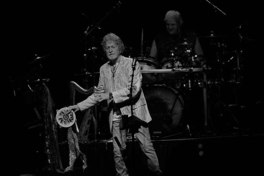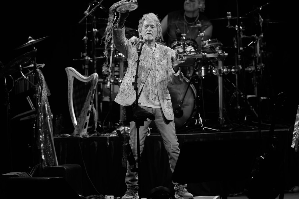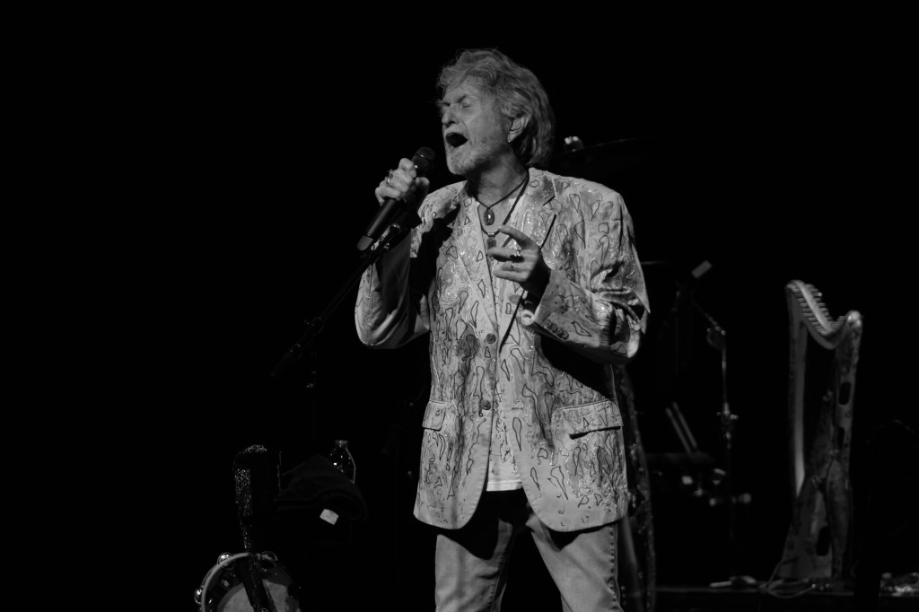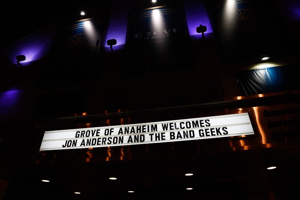 Legendary Yes frontman and one of the greatest voices in Prog-Rock Jon Anderson kicked off his tour with his new group Band Geeks in Tucson, AZ April 1st and two days later was at the Grove Of Anaheim. This would be Anderson’s second tour with Band Geeks and first shows for 2025. Anderson is performing two sets of mostly Yes songs. Anderson took the stage just after 8 P.M. following an intro of “Firebird Suite” and played a total of 10 songs kicking things off with Yes’s “Close the Edge” and included other classics like “Starship Trooper,” and closing song the epic “Roundabout.” “Starship Trooper” was performed in place of “I’ve Seen All Good People” performed in the previous show. For solo songs Anderson performed “Counties and Countries” and “Once Upon a Dream” which were performed live for the first time opening night and “True Messenger”. In addition to singing, Anderson played the tambourine, acoustic guitar. And harp. 10 songs may seem short but considering the length of the songs, the show lasted around two hours excluding intermission. Seeing Anderson is always a very special experience.
