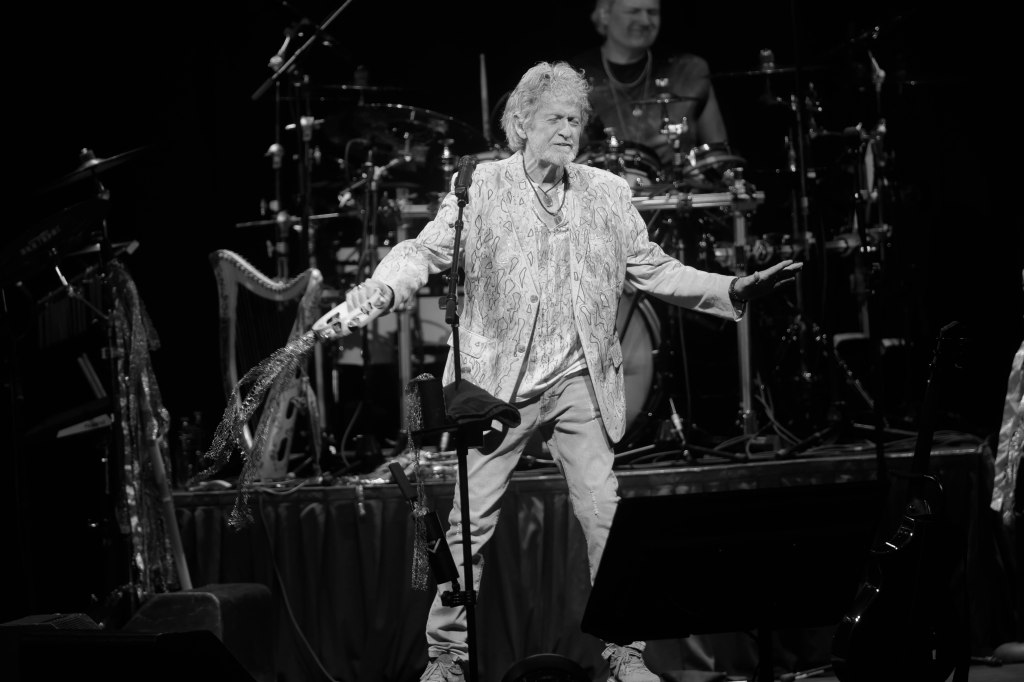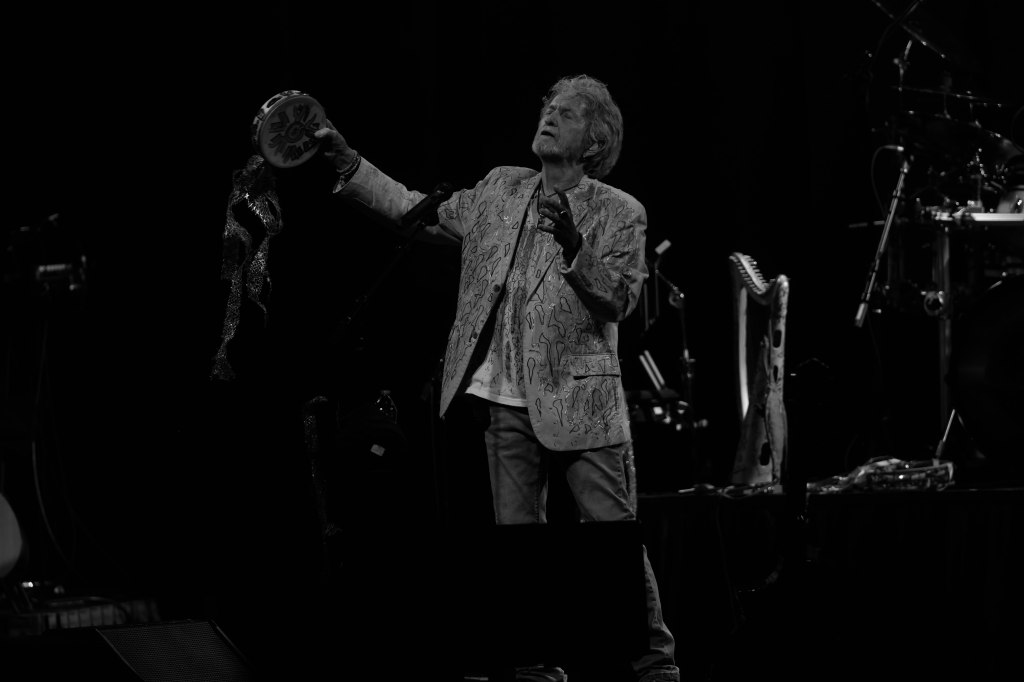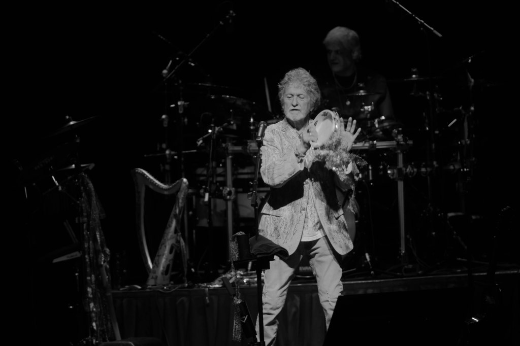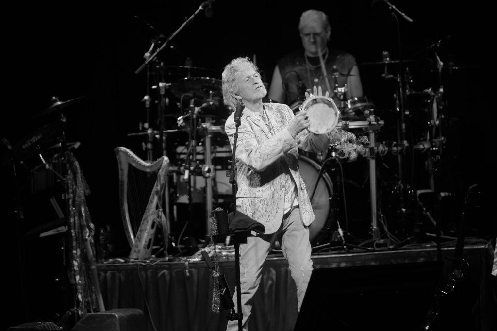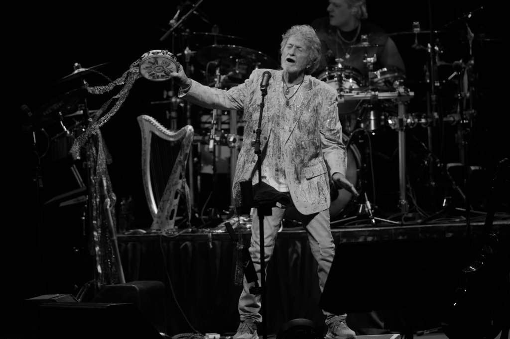 Legendary Yes frontman and one of the greatest voices in Prog-Rock Jon Anderson kicked off his tour with his new group Band Geeks in Tucson, AZ April 1st and two days later was at the Grove Of Anaheim. This would be Anderson’s second tour with Band Geeks and first shows for 2025. Anderson is performing two sets of mostly Yes songs. Anderson took the stage just after 8 P.M. following an intro of “Firebird Suite” and played a total of 10 songs kicking things off with Yes’s “Close the Edge” and included other classics like “Starship Trooper,” and closing song the epic “Roundabout.” “Starship Trooper” was performed in place of “I’ve Seen All Good People” performed in the previous show. For solo songs Anderson performed “Counties and Countries” and “Once Upon a Dream” which were performed live for the first time opening night and “True Messenger”. In addition to singing, Anderson played the tambourine, acoustic guitar. And harp. 10 songs may seem short but considering the length of the songs, the show lasted around two hours excluding intermission. Seeing Anderson is always a very special experience.