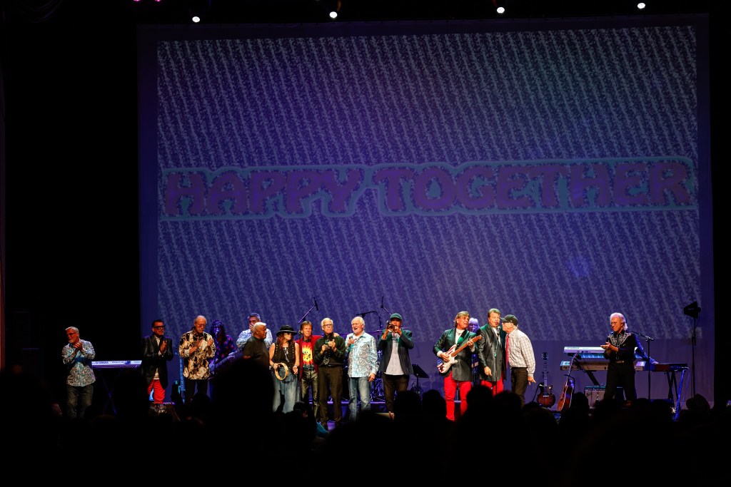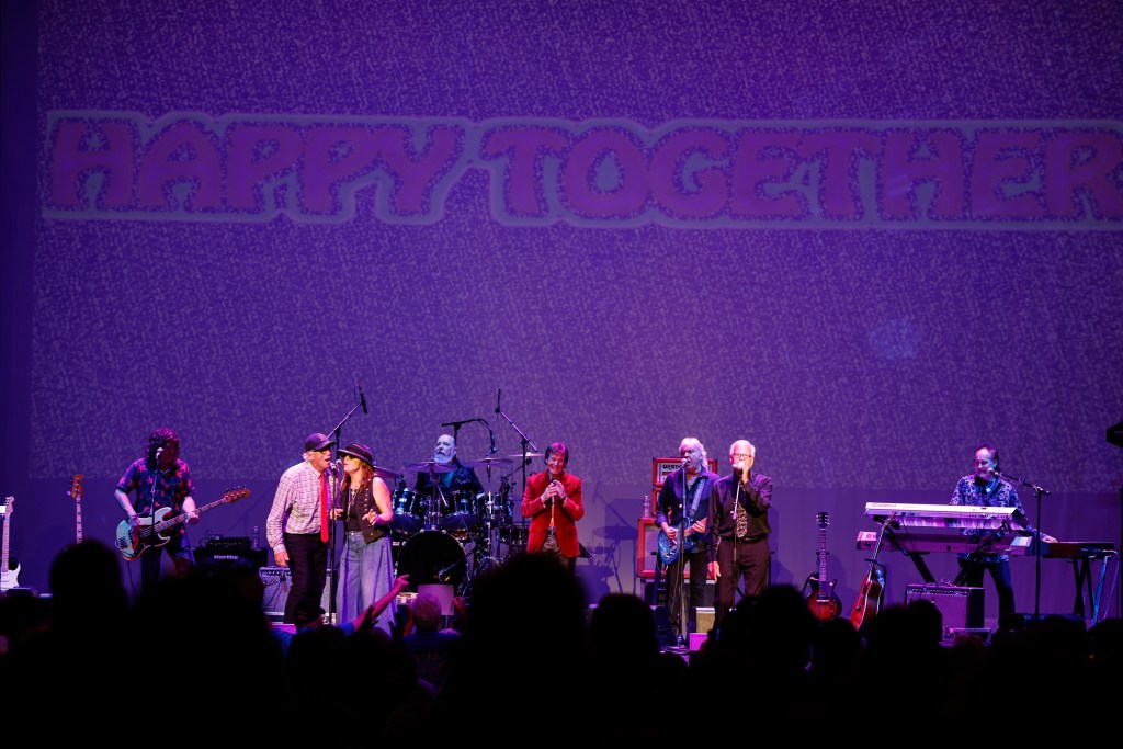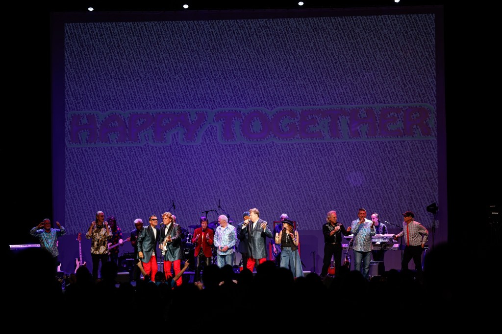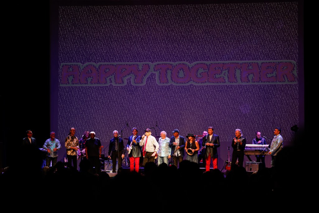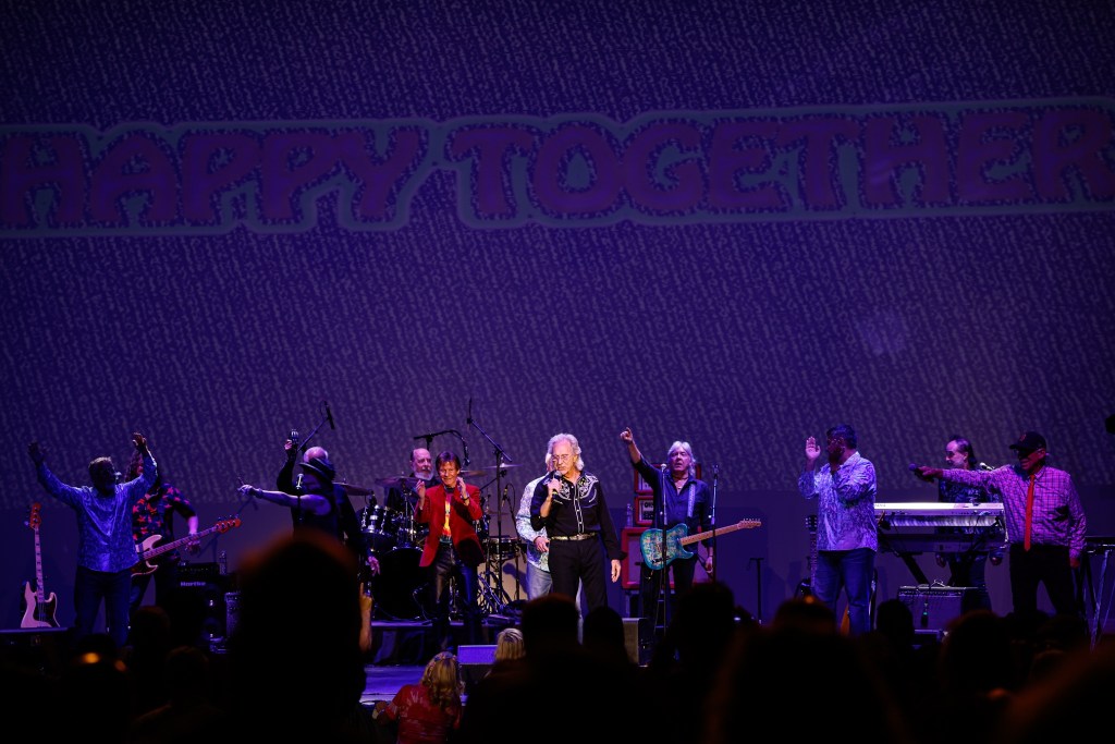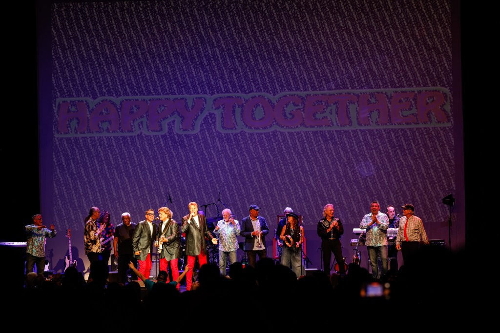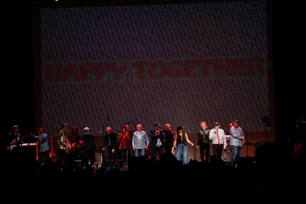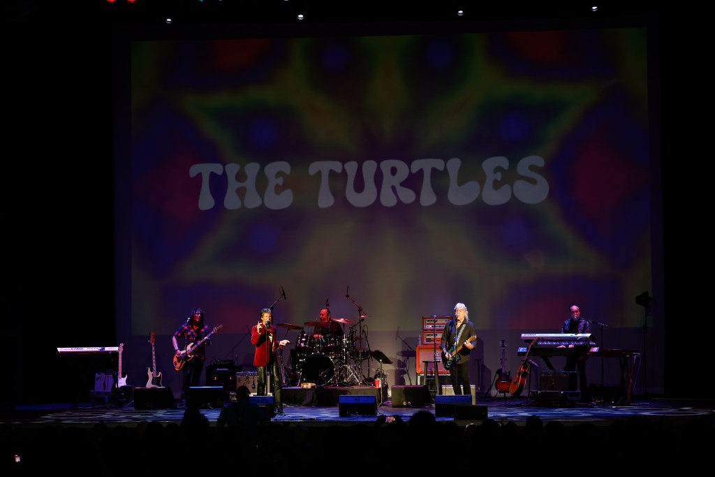 The Happy Together Tour came to the Grove of Anaheim July 17th and it was a night full of nostalgia and classic hits. Most years the show was at the Pacific Amphitheater at the OC Fair. The tour hosted by the Turtles features six iconic groups from the 60’s that all had major hits. With this many acts the sets were kept to 20 minutes of four-five songs with the Turtles playing seven songs and an encore. Also there was a house band backing each group consisting of guitarist/musical director Godfrey Townshend, keyboardist Manny Faocarazzo, and drummer Chris Camilleri. This was also a comedy show, not just music. There was also a pre-recorded announcement for each group and a few important things were mentioned about each. The Happy Together tour has included The Association, The Buckinghams, Classics IV, Gary Lewis and many more. The Happy Together tour goes back to 1984 after the Turtles became the Turtles Featuring Flo & Eddie. The Association and Gary Puckett were two of the acts on the original lineup. The 2025 Happy Together tour is made up of the Cowsills, The Vogues, Gary Puckett, Little Anthony, Jay & The Americans, and of course The Turtles.