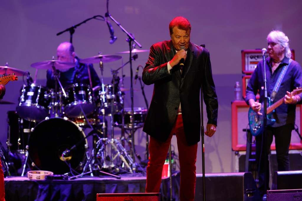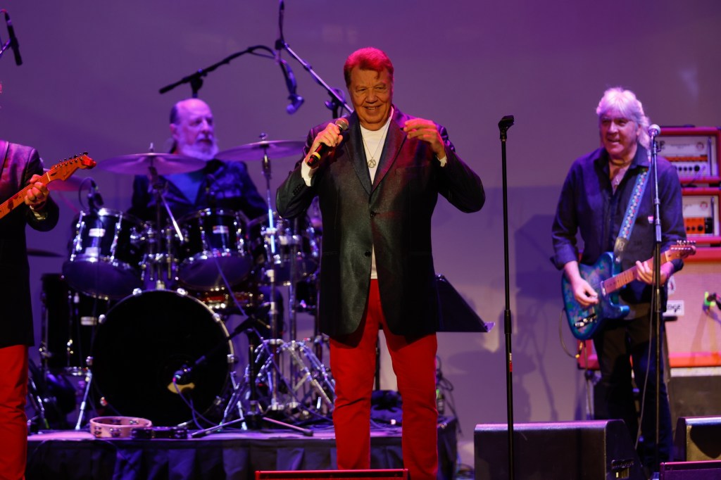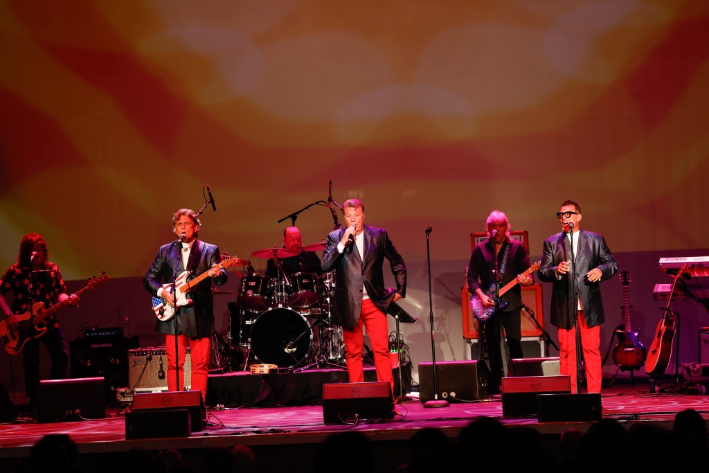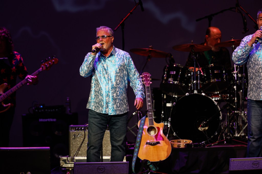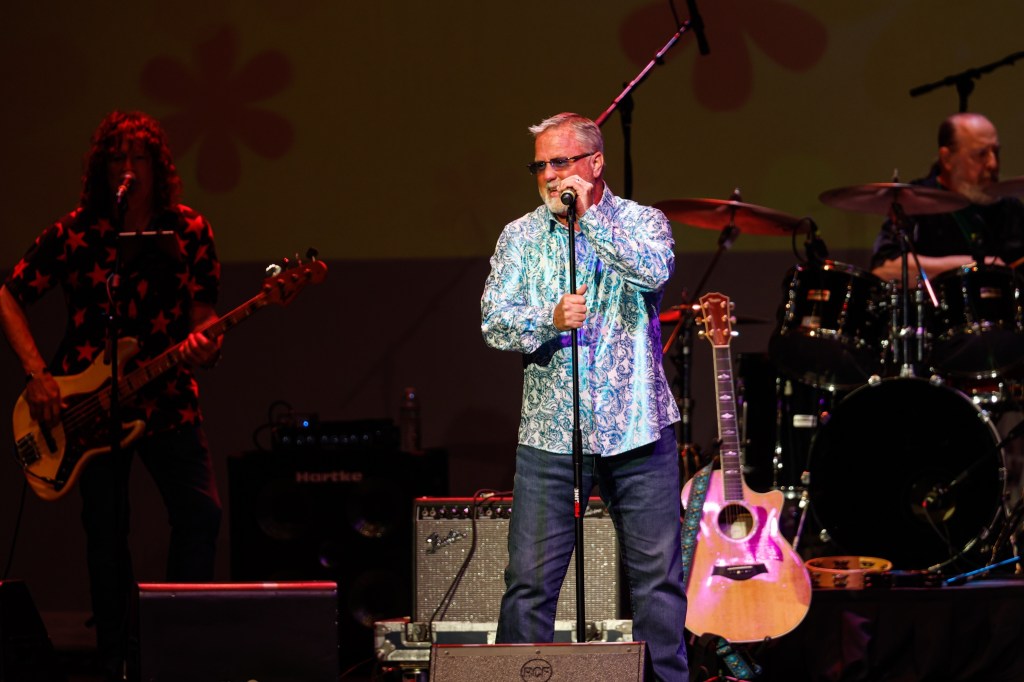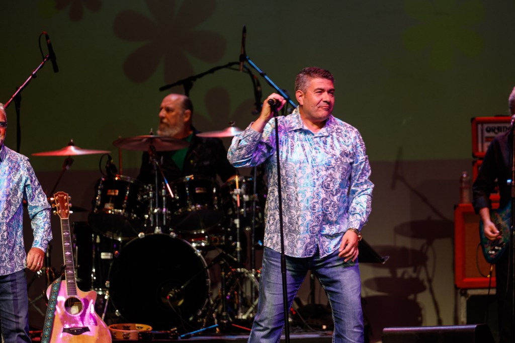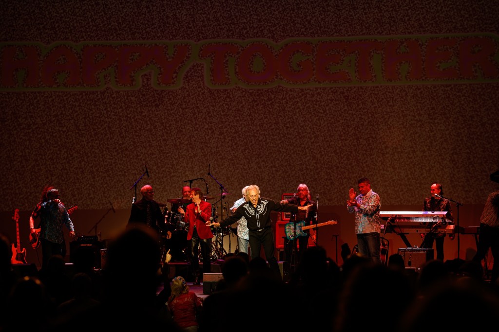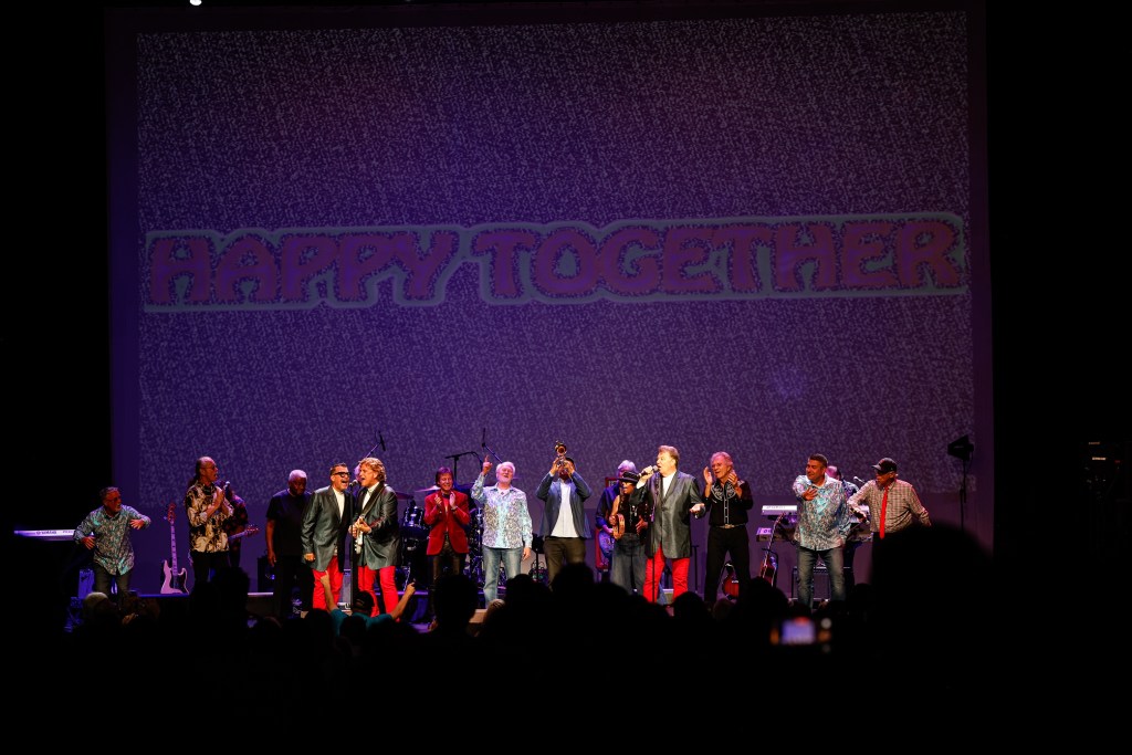 The Happy Together Tour came to the Grove of Anaheim July 17th and it was a night full of nostalgia and classic hits. Most years the show was at the Pacific Amphitheater at the OC Fair. The tour hosted by the Turtles features six iconic groups from the 60’s that all had major hits. With this many acts the sets were kept to 20 minutes of four-five songs with the Turtles playing seven songs and an encore. Also there was a house band backing each group consisting of guitarist/musical director Godfrey Townshend, keyboardist Manny Faocarazzo, and drummer Chris Camilleri. This was also a comedy show, not just music. There was also a pre-recorded announcement for each group and a few important things were mentioned about each. The Happy Together tour has included The Association, The Buckinghams, Classics IV, Gary Lewis and many more. The Happy Together tour goes back to 1984 after the Turtles became the Turtles Featuring Flo & Eddie. The Association and Gary Puckett were two of the acts on the original lineup. The 2025 Happy Together tour is made up of the Cowsills, The Vogues, Gary Puckett, Little Anthony, Jay & The Americans, and of course The Turtles.