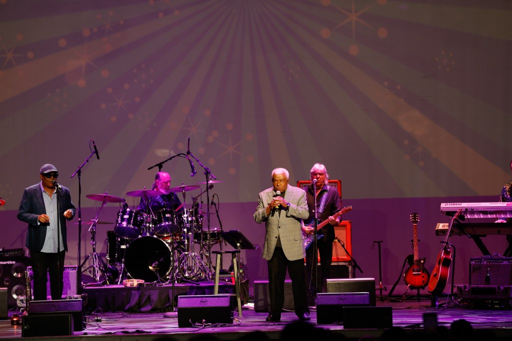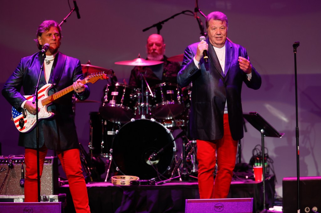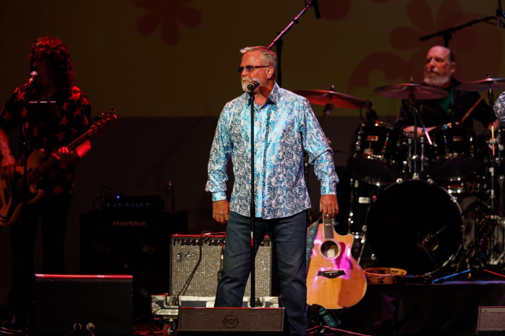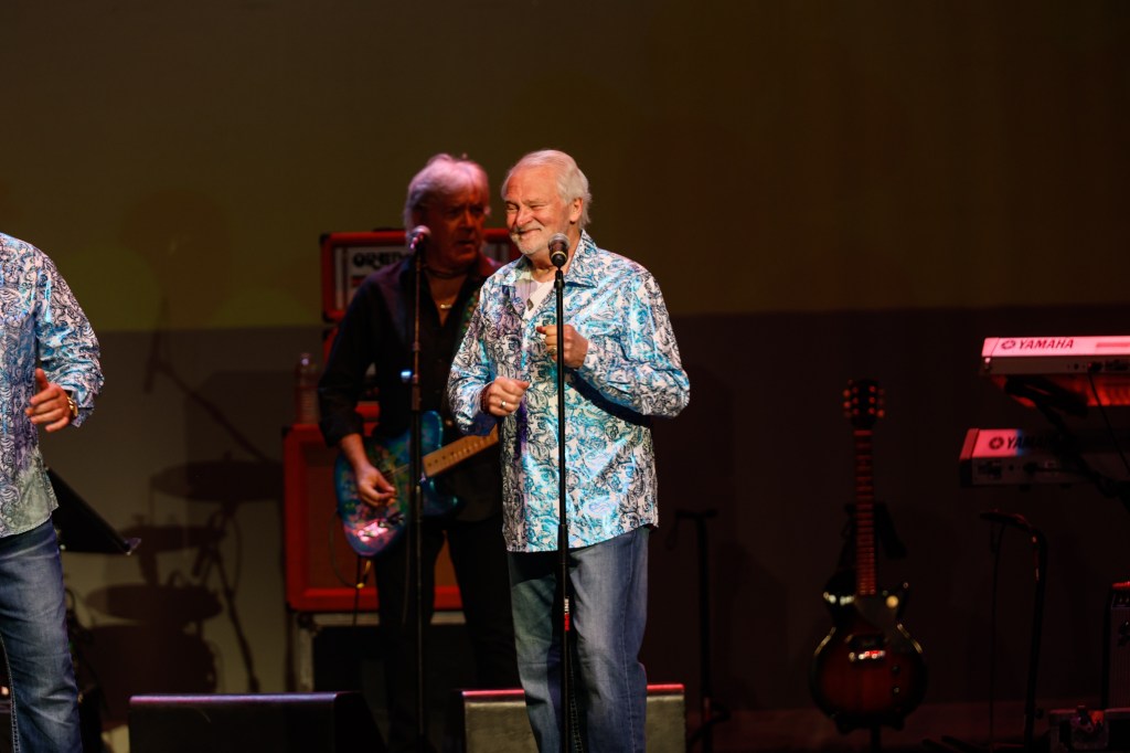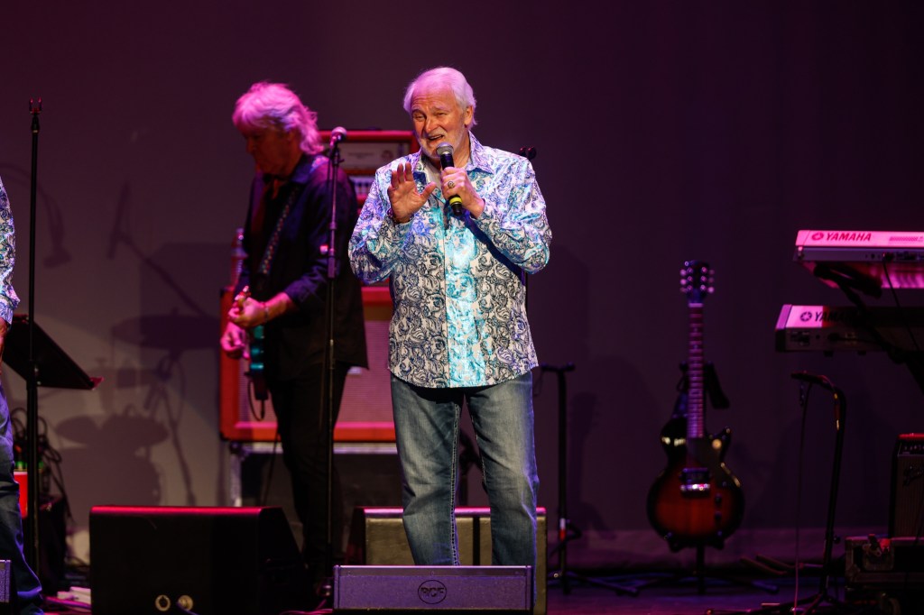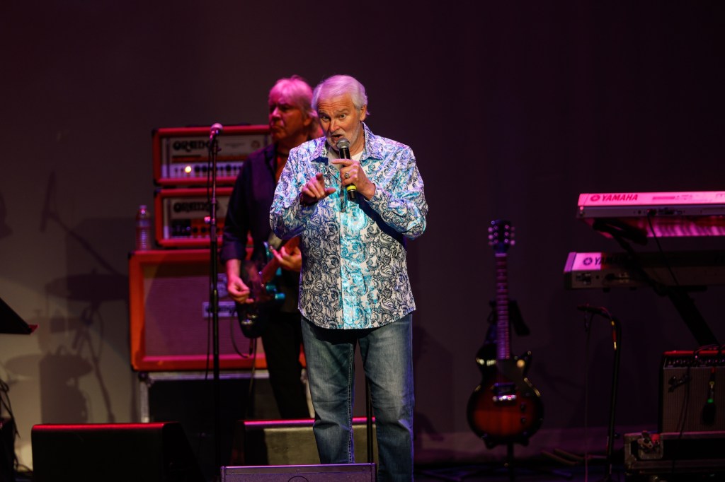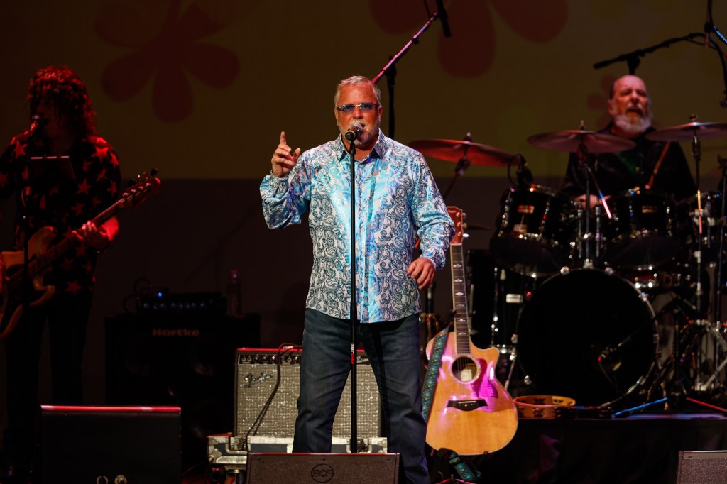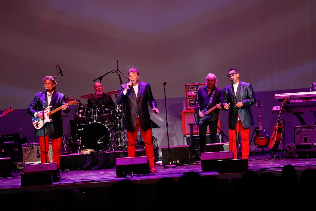 The Happy Together Tour came to the Grove of Anaheim July 17th and it was a night full of nostalgia and classic hits. Most years the show was at the Pacific Amphitheater at the OC Fair. The tour hosted by the Turtles features six iconic groups from the 60’s that all had major hits. With this many acts the sets were kept to 20 minutes of four-five songs with the Turtles playing seven songs and an encore. Also there was a house band backing each group consisting of guitarist/musical director Godfrey Townshend, keyboardist Manny Faocarazzo, and drummer Chris Camilleri. This was also a comedy show, not just music. There was also a pre-recorded announcement for each group and a few important things were mentioned about each. The Happy Together tour has included The Association, The Buckinghams, Classics IV, Gary Lewis and many more. The Happy Together tour goes back to 1984 after the Turtles became the Turtles Featuring Flo & Eddie. The Association and Gary Puckett were two of the acts on the original lineup. The 2025 Happy Together tour is made up of the Cowsills, The Vogues, Gary Puckett, Little Anthony, Jay & The Americans, and of course The Turtles.