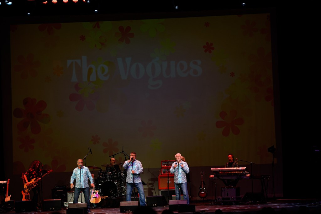 Next up were The Vogues appearing in matching shirts and jeans. The Vogues were once a quartet and now a trio. Co-founders Bill Burkette and Don Miller passed in 2018 and 2021. The group is now Troy Elich, Royce Taylor, and Elliott McCoy. Although it’s been 50 years since a Vogues album was released, the music stands the test of time. Their TV performances included The Ed Sullivan show, Tonight Show Starring Johnny Carson, and American Bandstand. The Vogues were inducted into the Vocal Hall of Fame back in 2001.